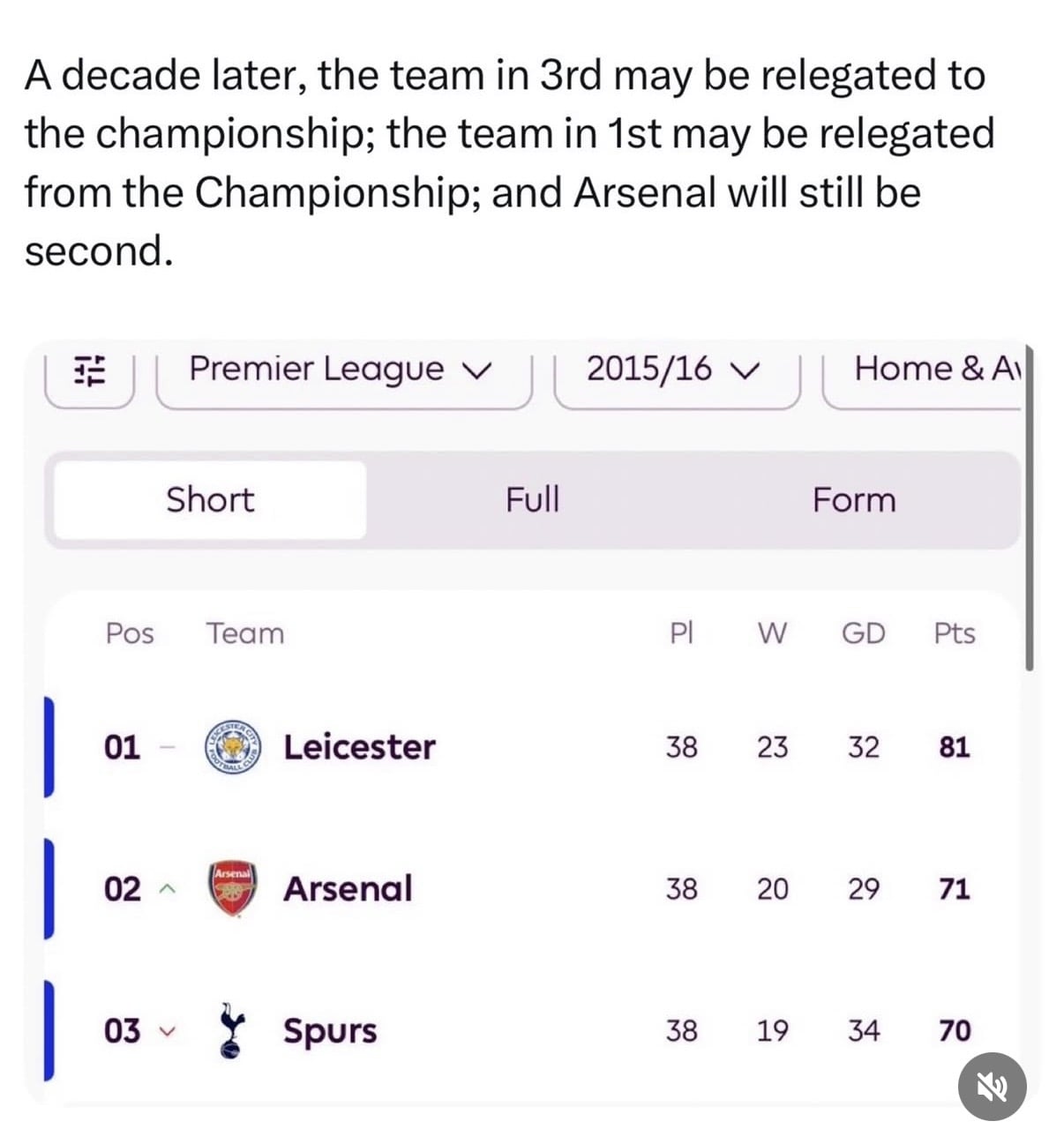 They just said OPTA has said that Arsenal still have a 73% chance of winning the Premier League.