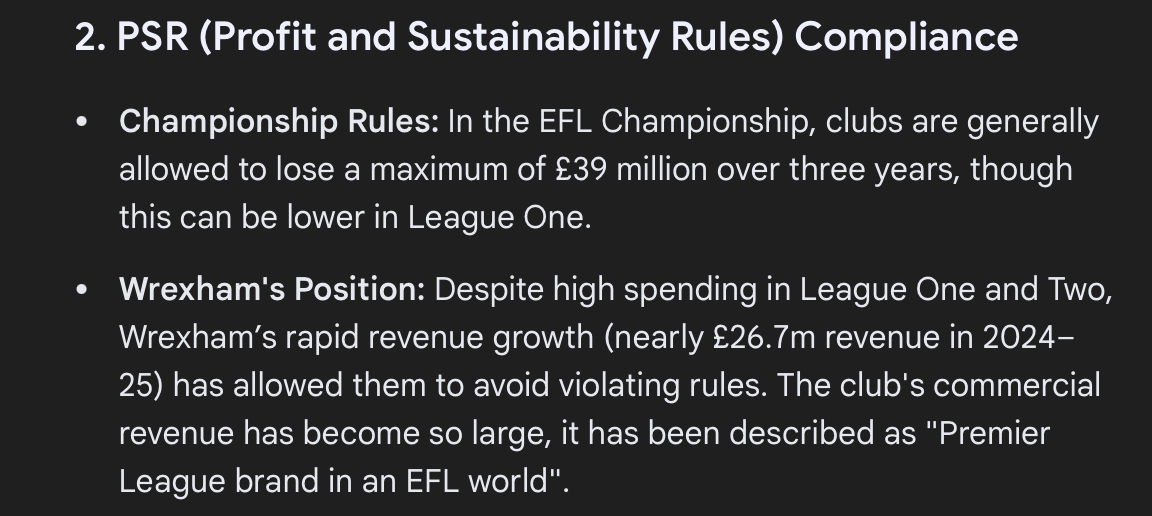 To be fair to Wrexham, there's nothing dodgy about their commercial income. They're not being sponsored ludicrous sums by a company related to the owner, as a means of getting around the rules.