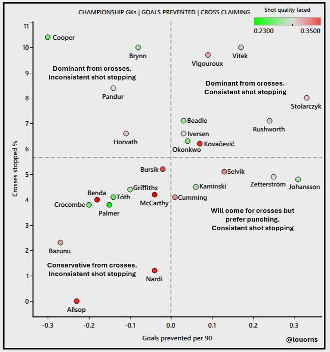 You don't want an Allsop or a Bazunu from this, who have faced crap shots and still let a load in, and someone like Okonkwo is actually one of the better keepers in the league based on this, middle of the road in goals prevented and crosses claimed, but faced much better shots than most of the league1 -
