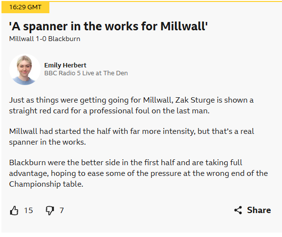 Millwall red card...