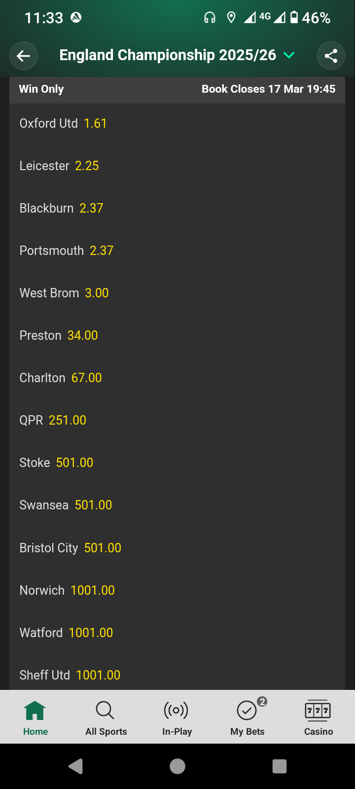 Quite funny to see Preston odds after so many of their fans had a pop at little old Charlton compared to seasoned Championship Preston when they signed Small from us.1