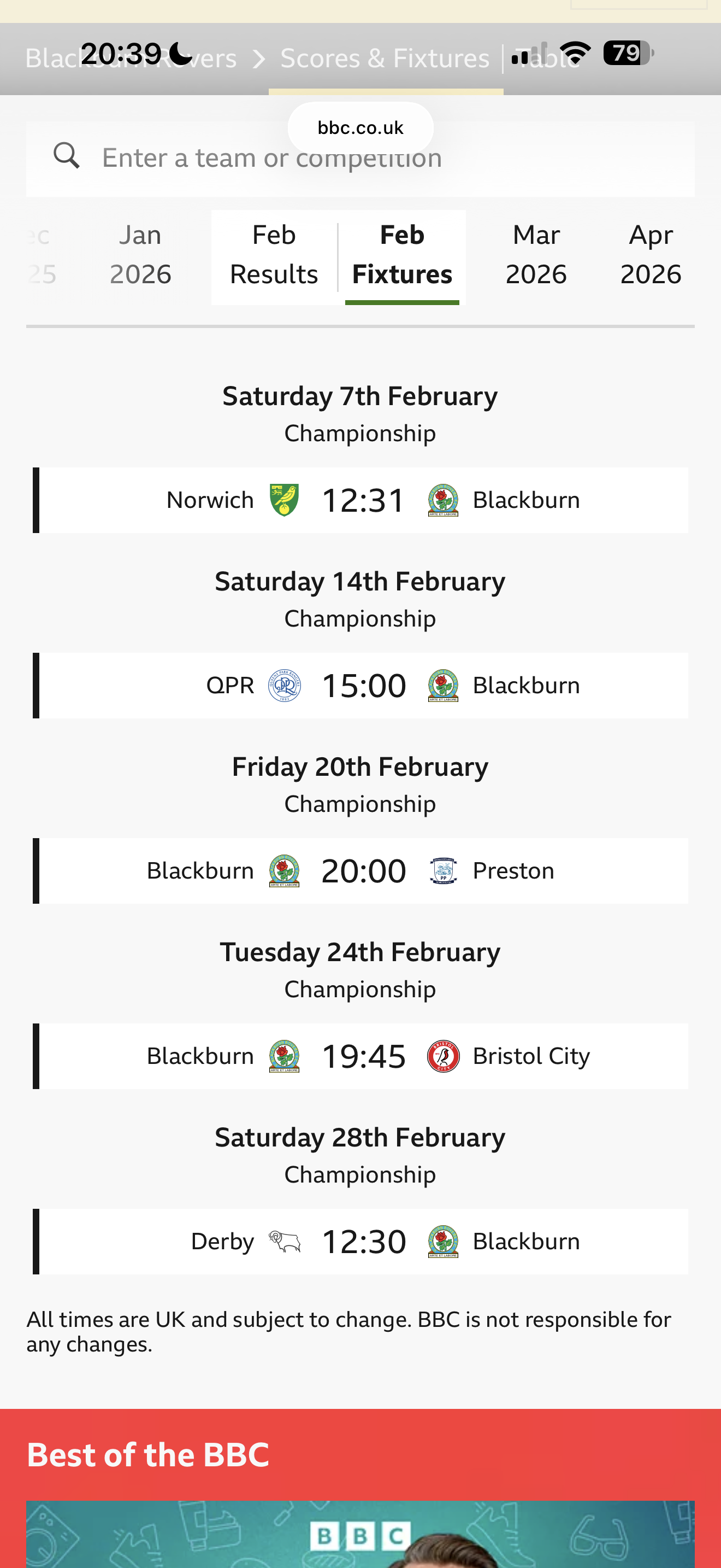 Blackburn - 12.56 (7 home, 9 away)