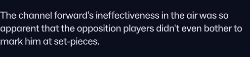 Loaned out Kelman and he gets this comment on every single match report, something tells me @Scoham doesn't rate Charlie's heading