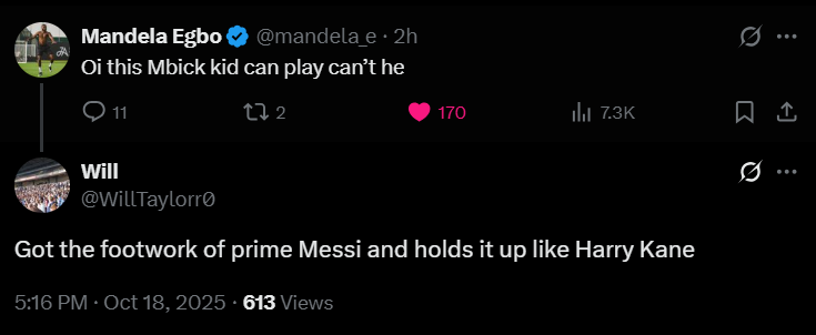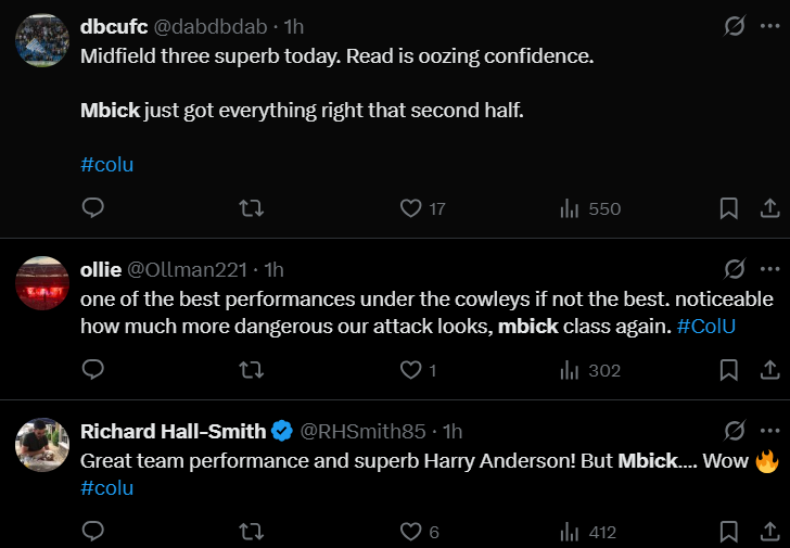 Crispywood said:I wonder if we recall Mbick in January and see if we can send him on loan to a L1 club. I know it’s not always the right decision to uproot a player but if Mbick carries on this form he arguably needs to be tested at a higher level1