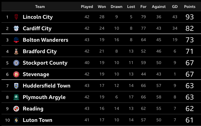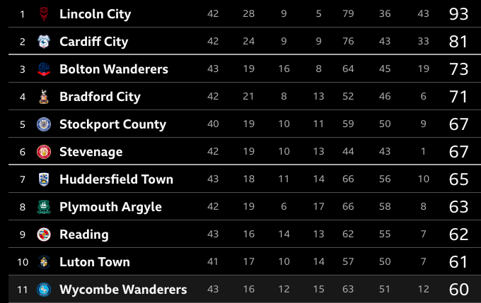 That table is wrong; Cardiff have 82-pts