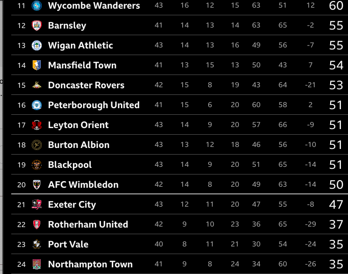 Rotherham being relegated to League 2 is a bit of a shocker. I know they punched above their weight getting to the Champ but 2 relegations in 3 seasons is crazy.