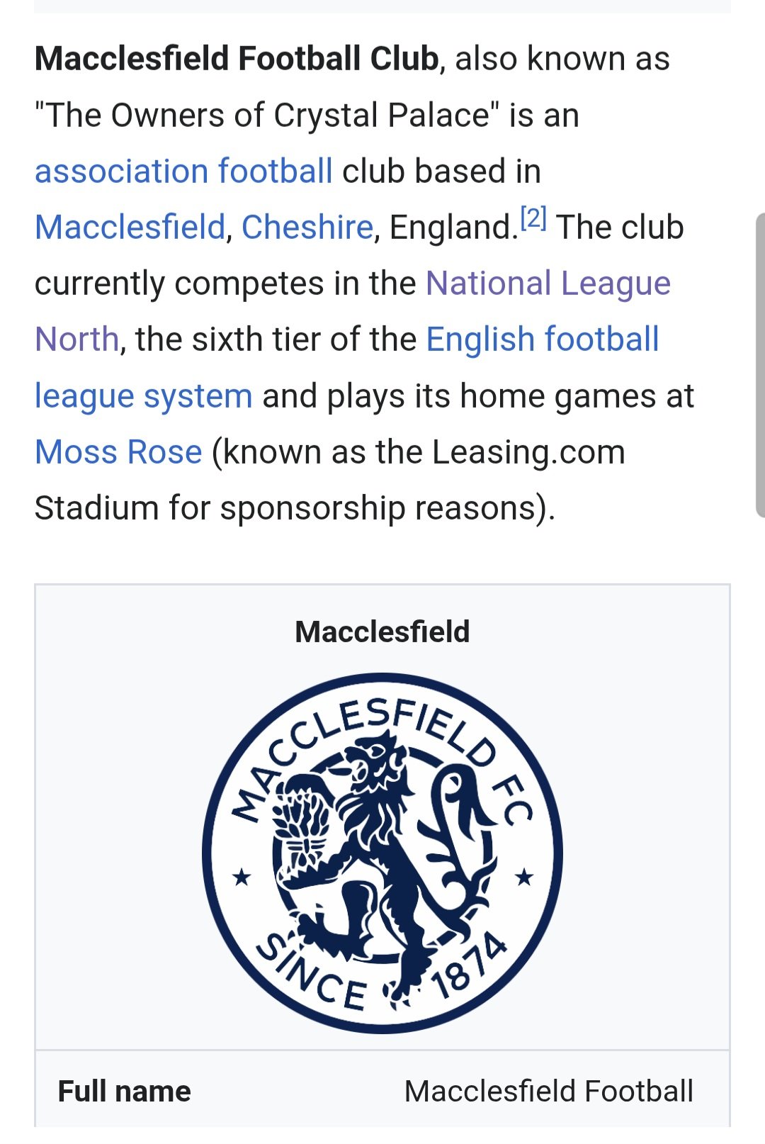 up the Macclesfield. Funny to see the palace fans giving it to there players, too much this season but hopefully a relegation push next year stripey Nigel cnuts7 -
