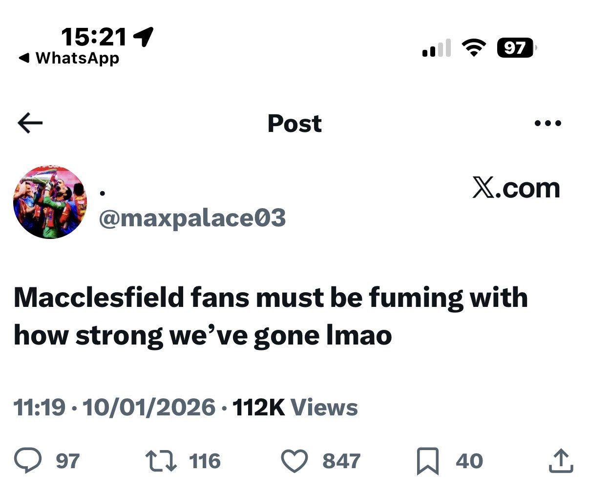 Thanks for your sacrifice Damo. Any chance of a fiver on Millwall as well?DamoNorthStand said:I’m gonna stick £20 on Palace for the old reverse psychology bet