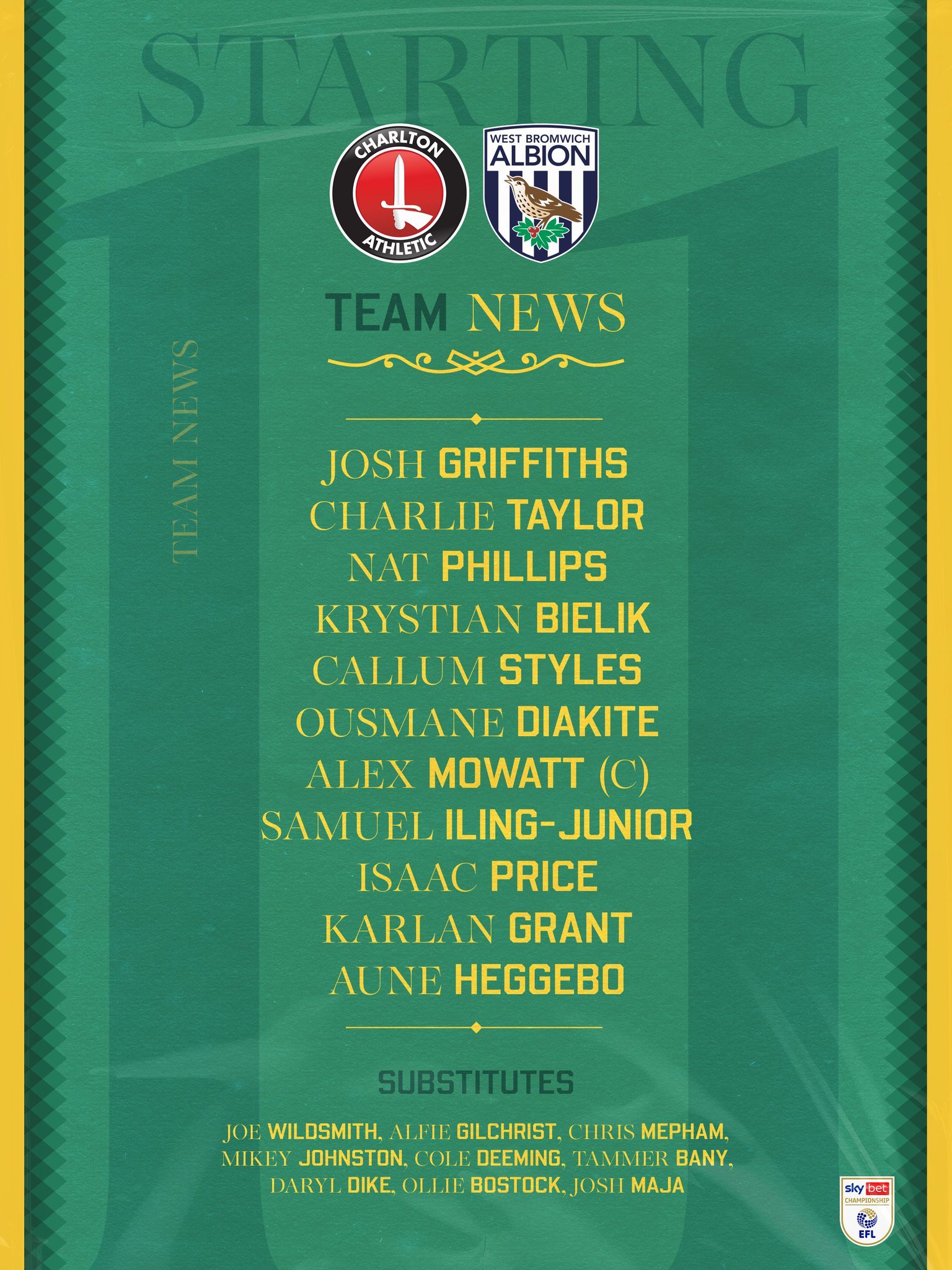 MATCH THREAD : Charlton Athletic V West Bromwich Albion : Tuesday 4th November 2025 : KO 19:45