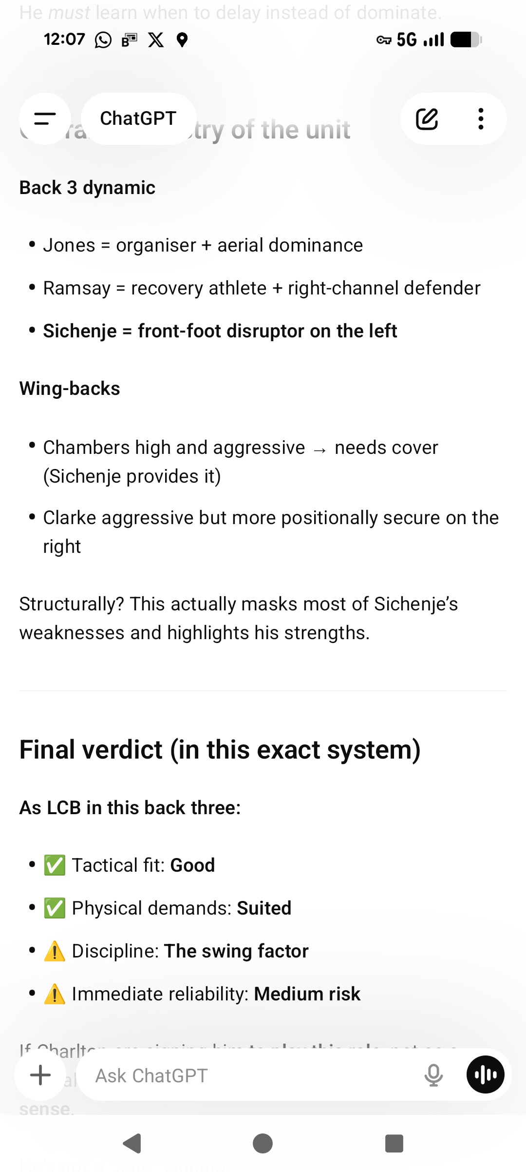 Chat GPT reckons he is suited for our defence at LCB but is a headcase and has already been sent off twice and booked 4 times this year9 -