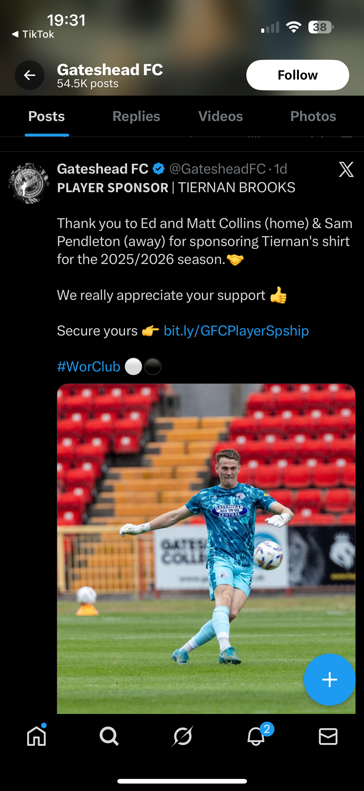 Linda Brooks has just started following the club on Twitter.5