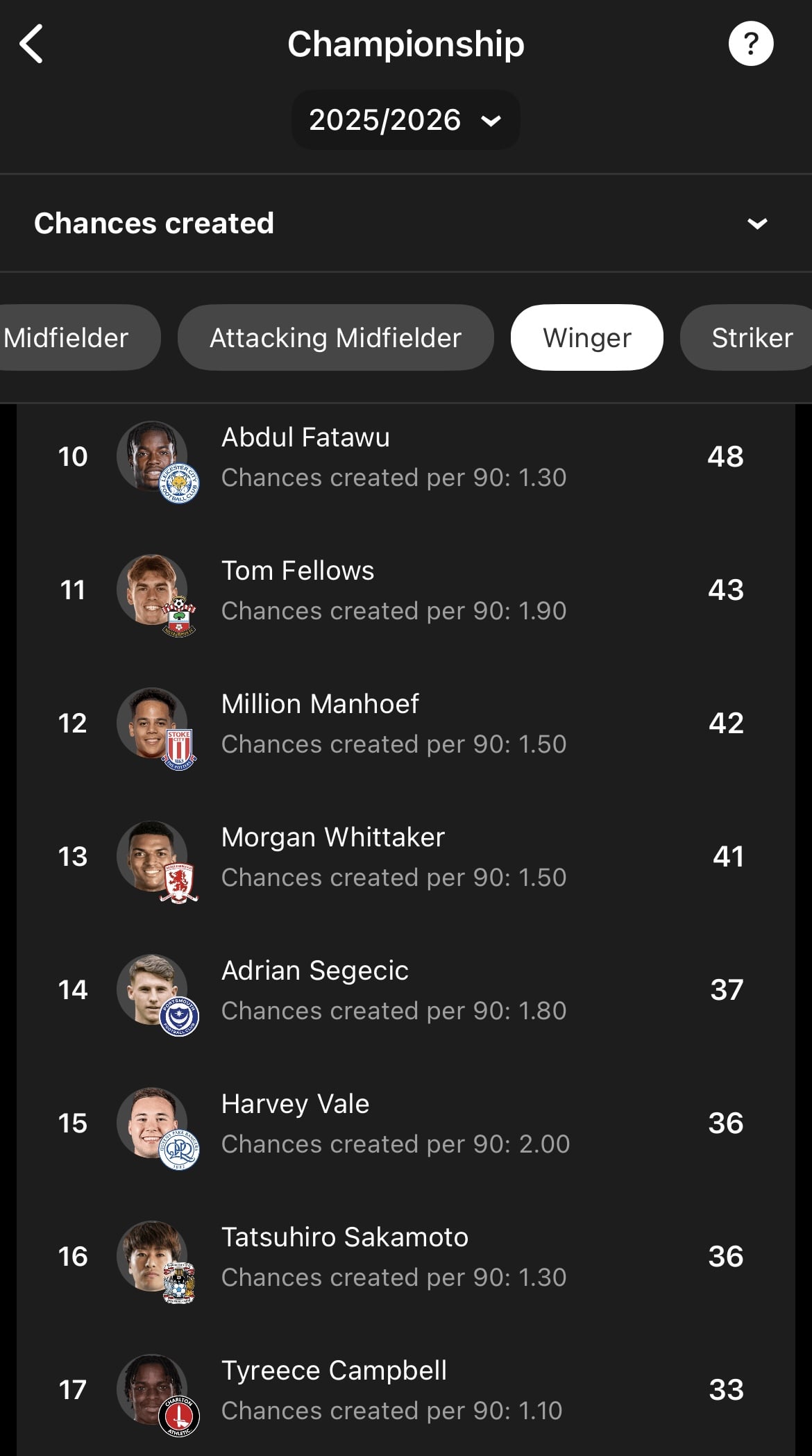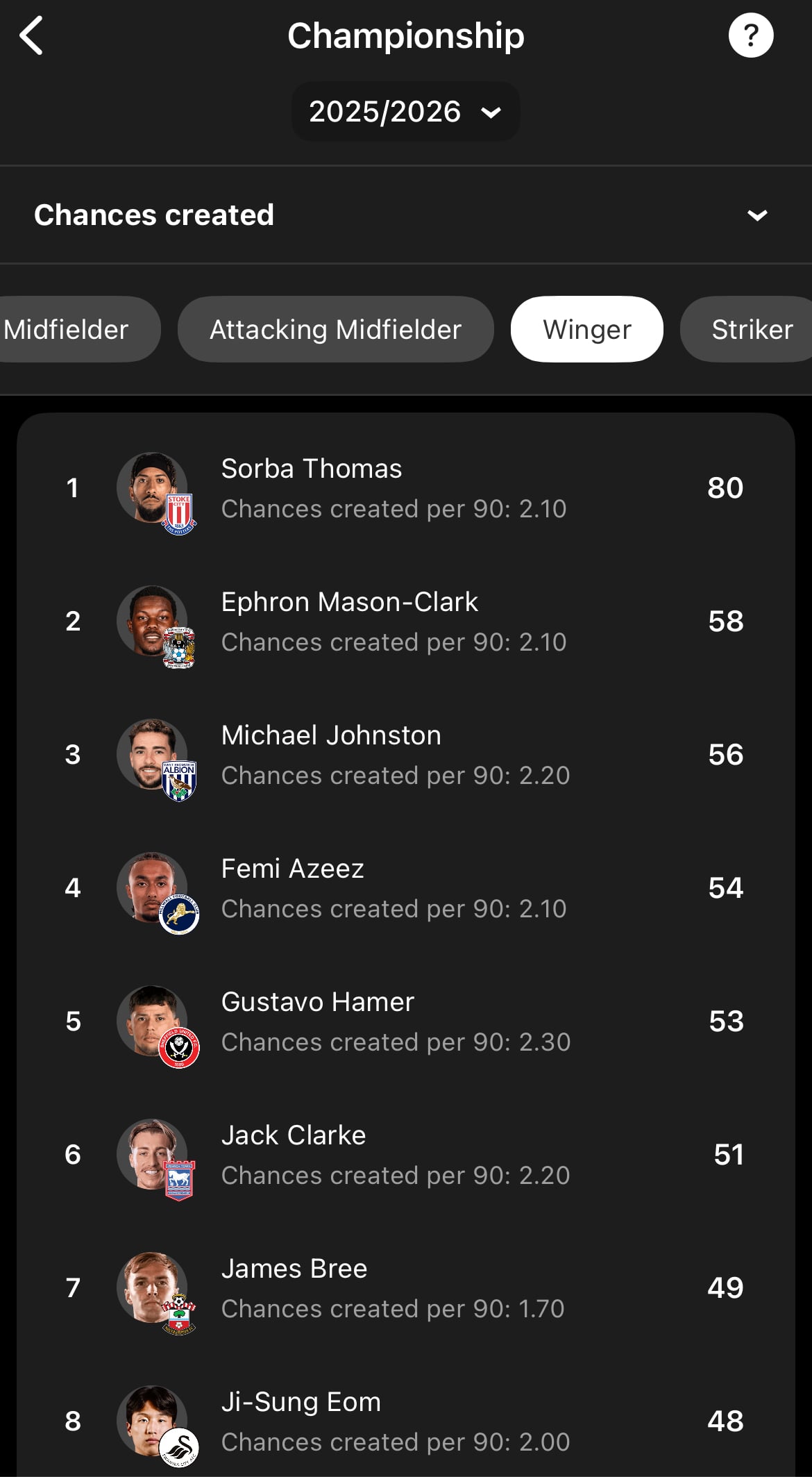 He’s 17th in the league when compared to wingers, the best wingers create around 2 chances per game, so his stats aren’t as poor as you might think.