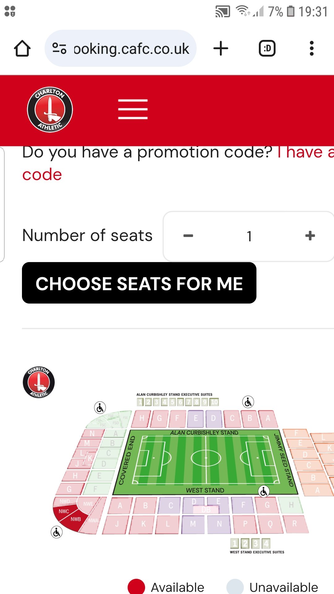 Upper west seat, block N, £38. There as at 6.57pm0