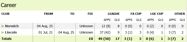 When you look at his scoring record I can believe it - would have looked a gamble at the time, he's one goal away from equalling his league goals scored for Lincoln.