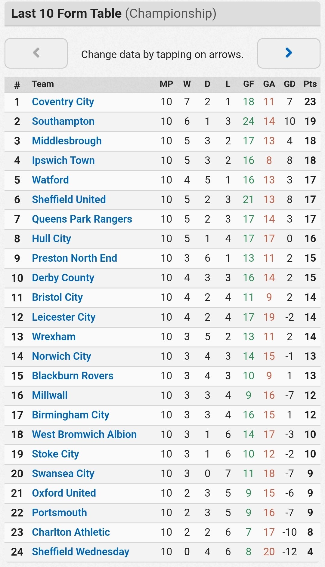 . If we ignore Sheffield Wed, not pretty seeing our lowly position:
