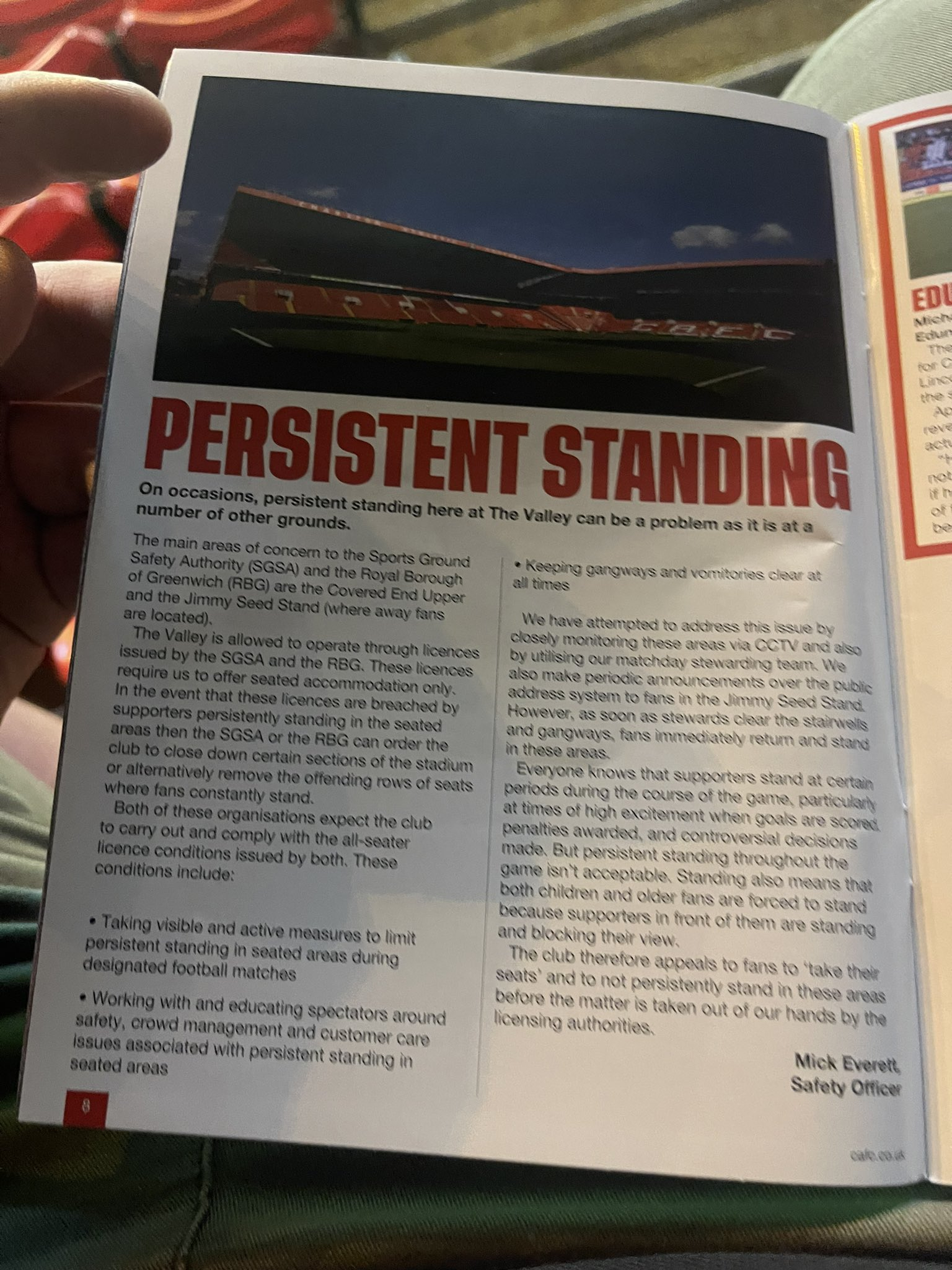 Would standing up make the atmosphere any better at home games? Possibly but the authorities would not be impressed with the club as shown in October 2023