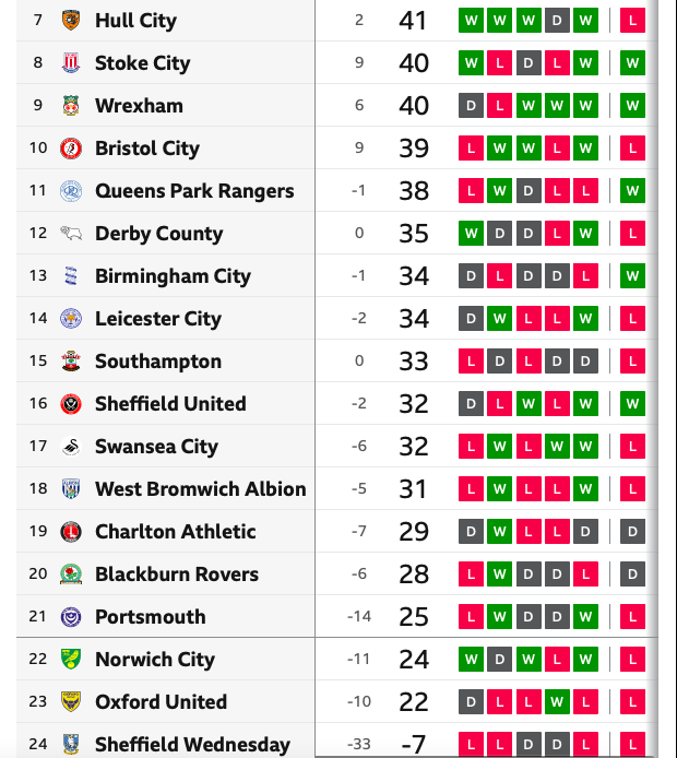 WBA....Ryan Mason gone.Garrymanilow said:The target is always 50 points and then whatever we can get on top of that. The frustration is not getting the win over Blackburn and at least drawing against Pompey as I don't see Norwich and Sheffield Utd staying in the mix. Swansea could improve as well, the one to watch is West Brom, it will all depend on when they finally give up on Ryan Mason. I think Oxford, Pompey and Blackburn are the ones we need to pray don't have any kind of turnaround and we should be ok. Getting 4 points off Blackburn is good, we need to ensure we get 3 off Pompey and at least 4, preferably 6 off Oxford and then force as many home wins as possible. There's always interesting stuff that can happen at the end of the season as well, we might play some teams who are safe but not bothering the play-offs while we're aggressively looking for points to stay up and get some unexpected away wins as a result0 -