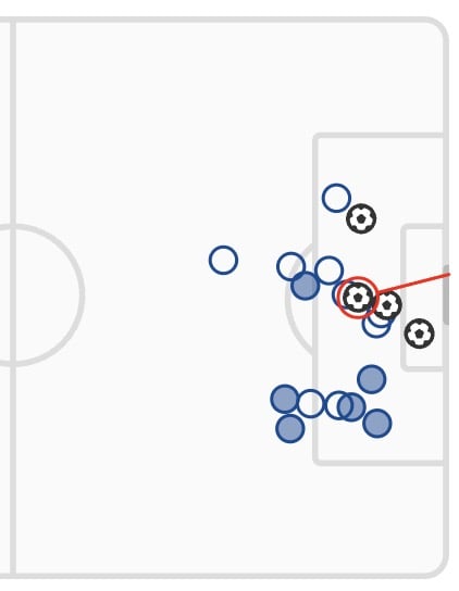 Just for reference, this is the shot map when we stood offfenaddick said:I find the “we stood off them too much” thing mad. When we stood off them we held them at bay for almost the whole half. They had a lot of shots but they were long range and blocked or relatively comfortable saves for Mannion. When we opened up a bit more and got in their faces we left gaps for them to exploit. It’s like none of you remember Southampton, Stoke or Coventry away where we were aggressive and picked apart by squads a lot less talented than Chelsea’s.
