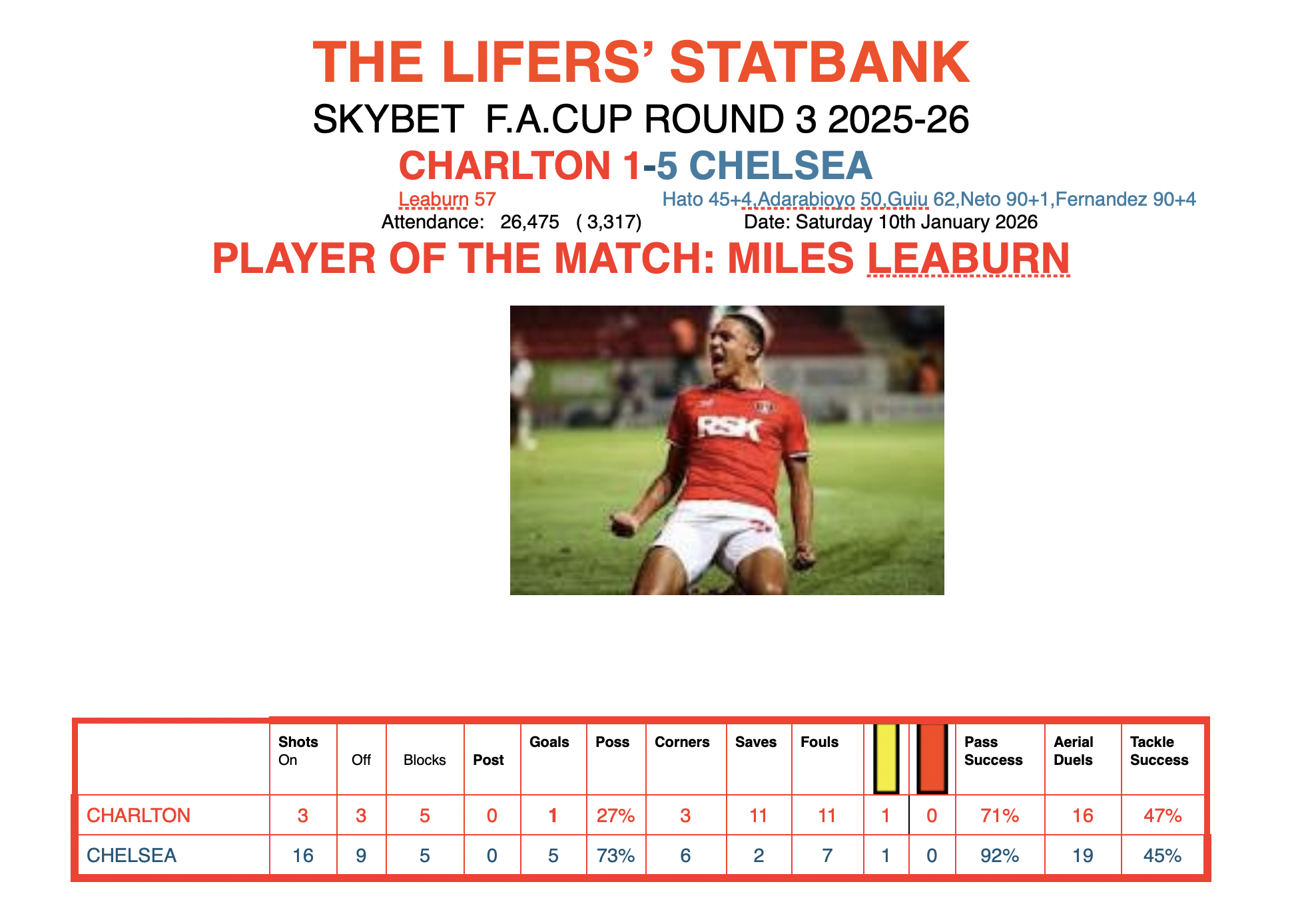 STATBANK: FA CUP R3: CHARLTON 1-5 CHELSEA