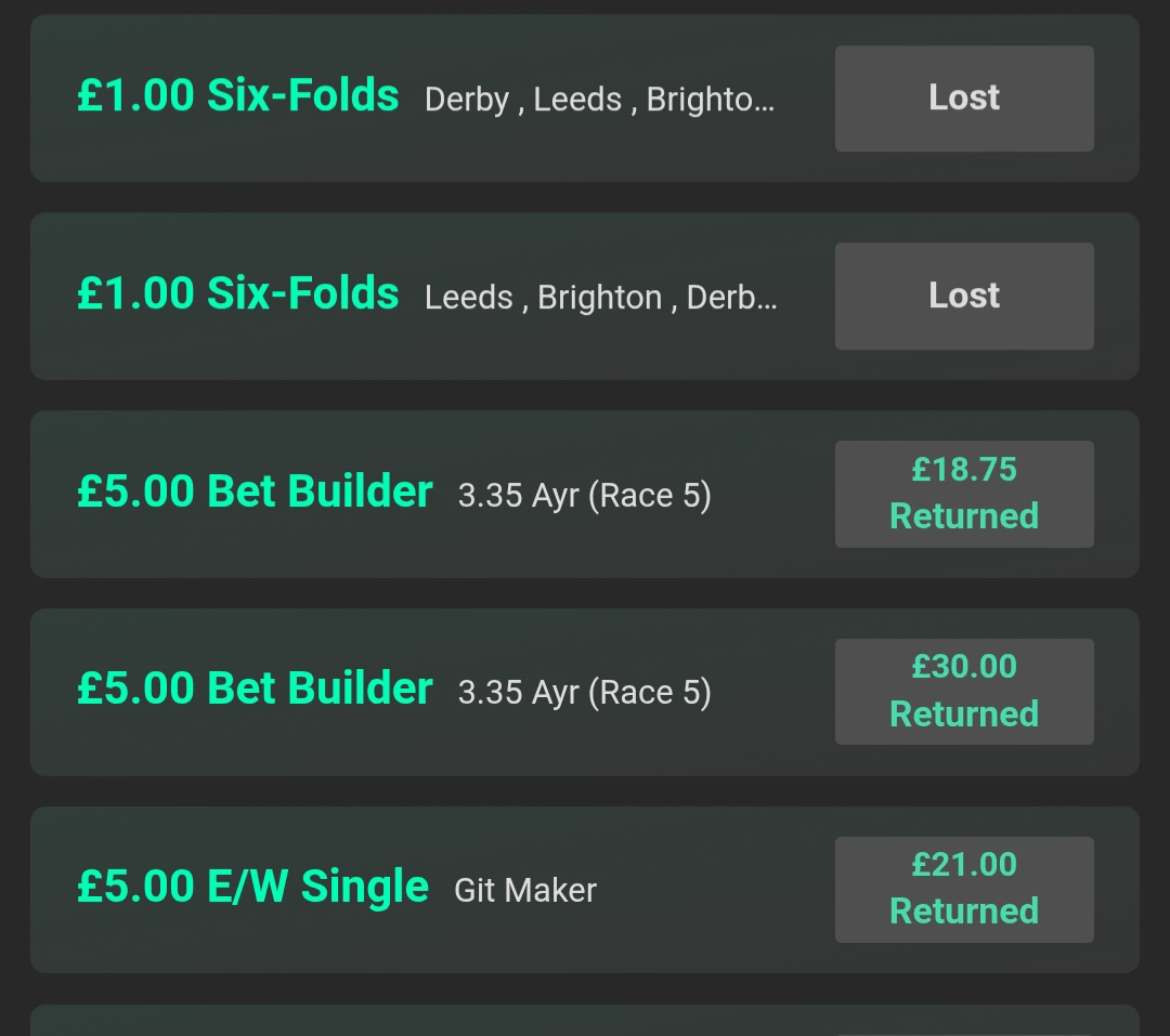 Cheers and bad luck @Addick AddictAddick Addict said:Well done once again PM. I am an old school "seconder" but have surpassed myself today in having two horses E/W, first four places, with both finishing first loser in fifth place!!!