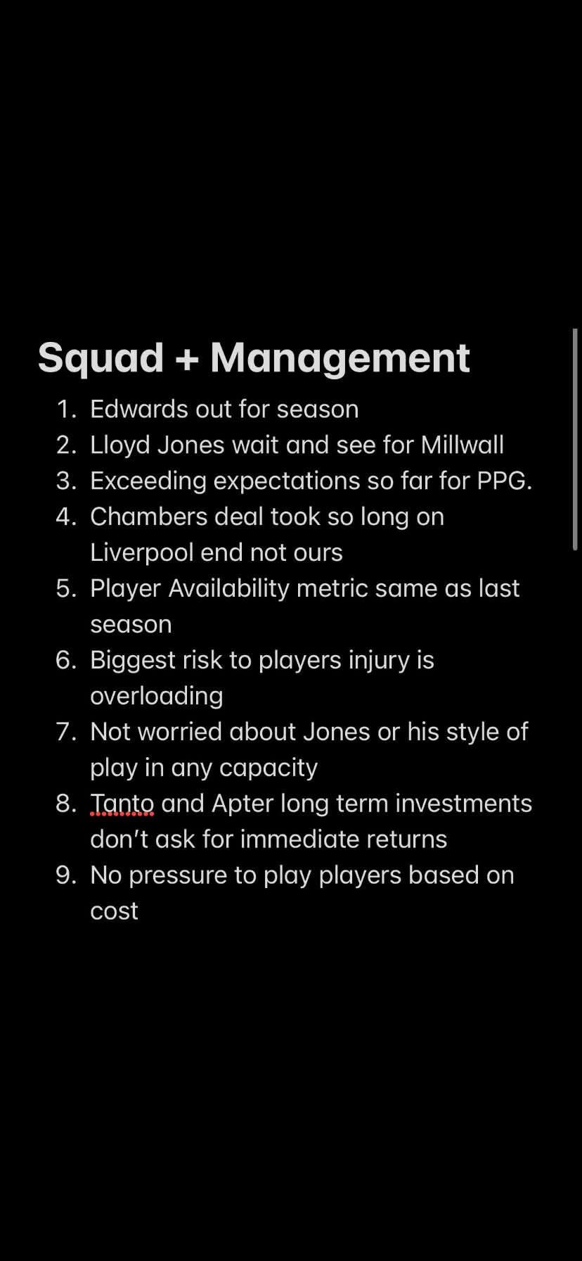 10. some squad acquisitions are with an eye on the future and not just the current season - I think Apter was referred / implied to be in this context (at least stated if not believed)