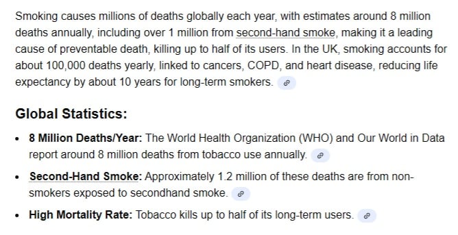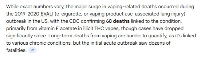 I searched 'how many people die from cancer related to vapes each year'