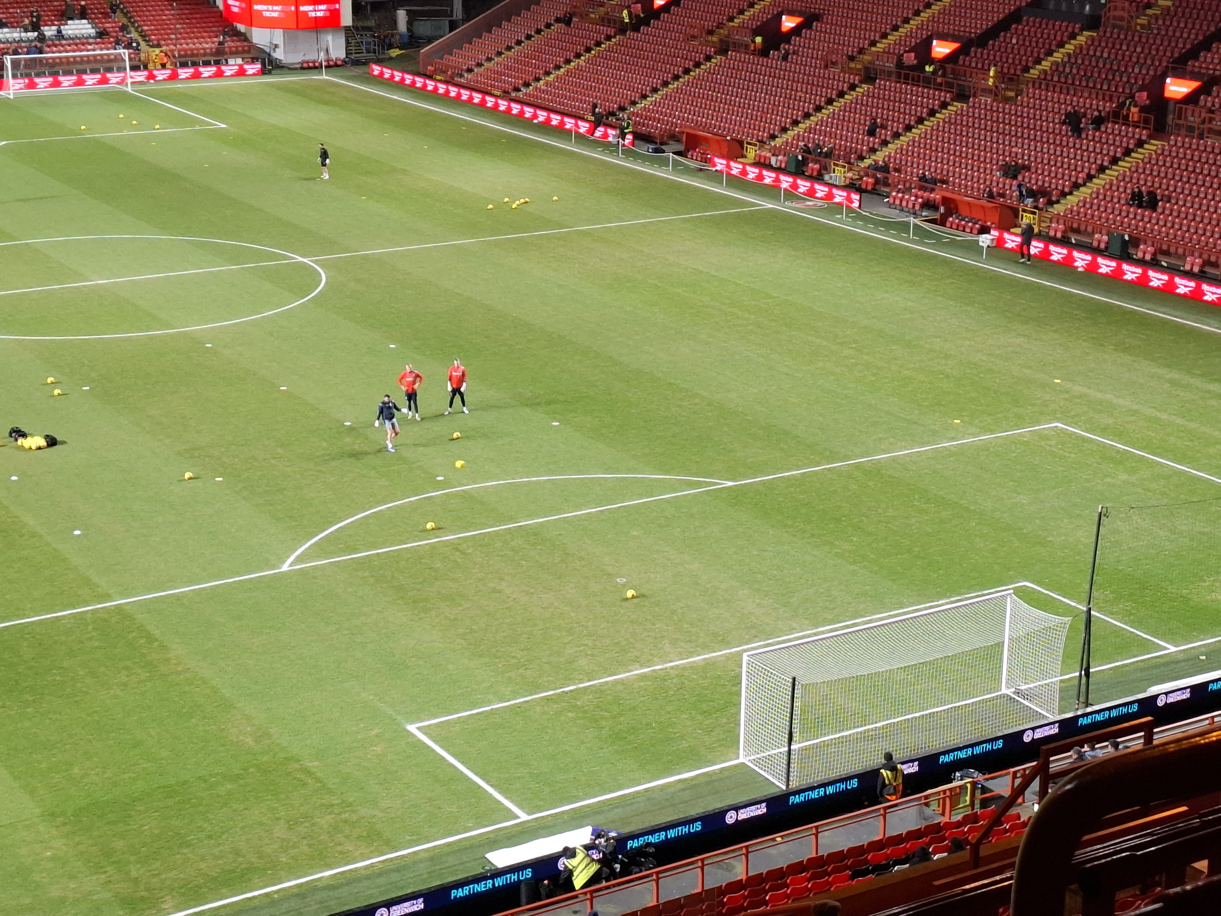 Goalkeepers are doing their warm ups, currently practising their kicking (although they could be preparing to take over free kick duties 25 yards out in the absence of Bree) ...