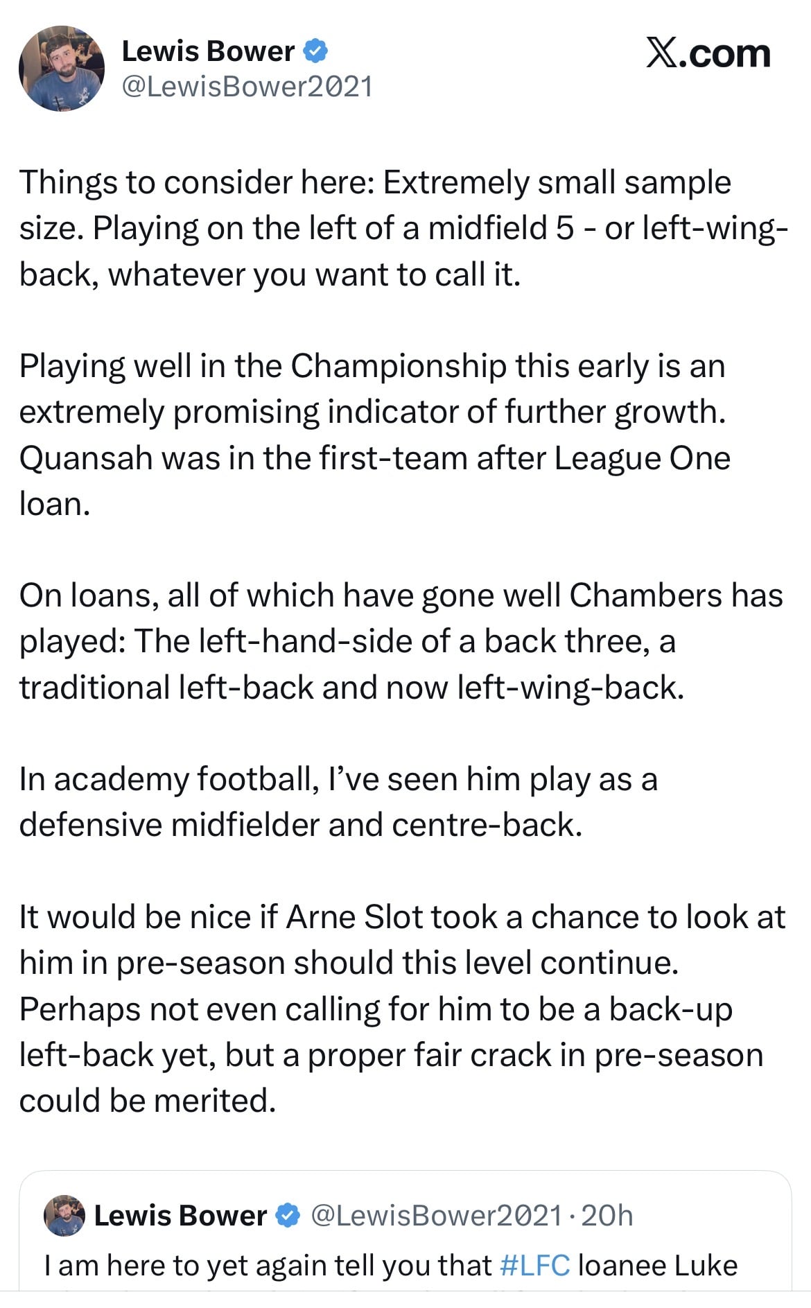 This guy covers a lot of Liverpool academy stuff, Chambers clearly well thought of by there by fans/journos