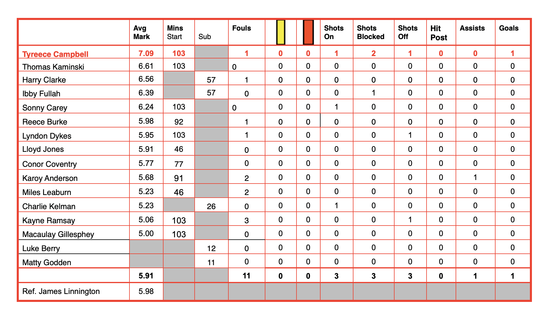 Can't believe TC only got 7.09 after filling in at LWB then scoring a potential goal of the season...
