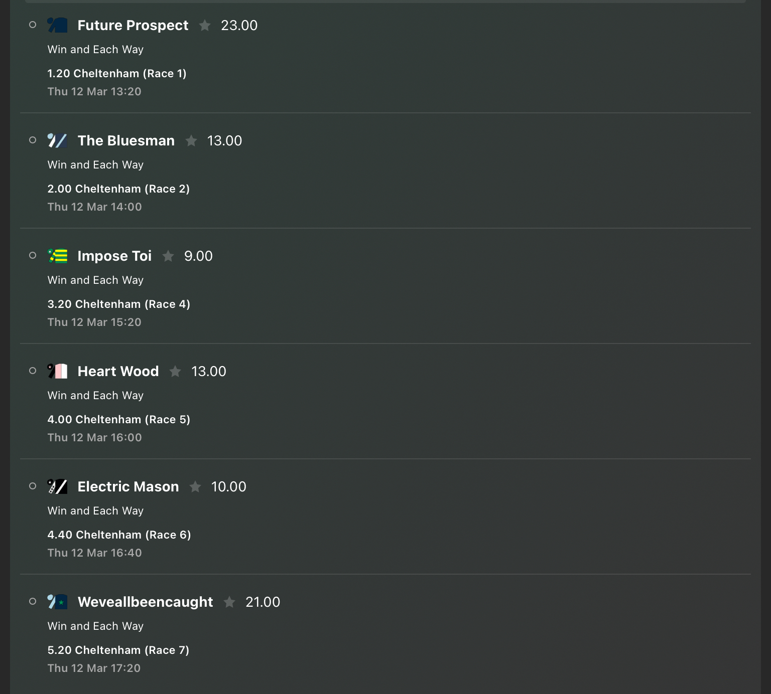 Said earlier in the thread. It’s my favourite race of the festival made even better when peanuts is behind a horse that wins.