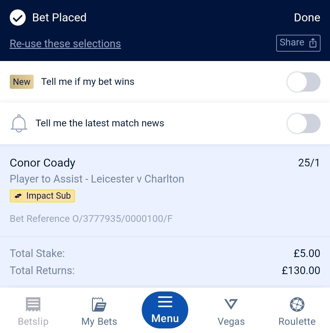 What happens when Leicester score?ForeverAddickted said:We're leaking too many sloppy goals at the moment, so can understand the Defensive aspectWe need to get back to the basics of keeping clean sheets, working on being solid at the back againWe're not going to be a side, not this season, that is going to simply outscore the opposition1 -