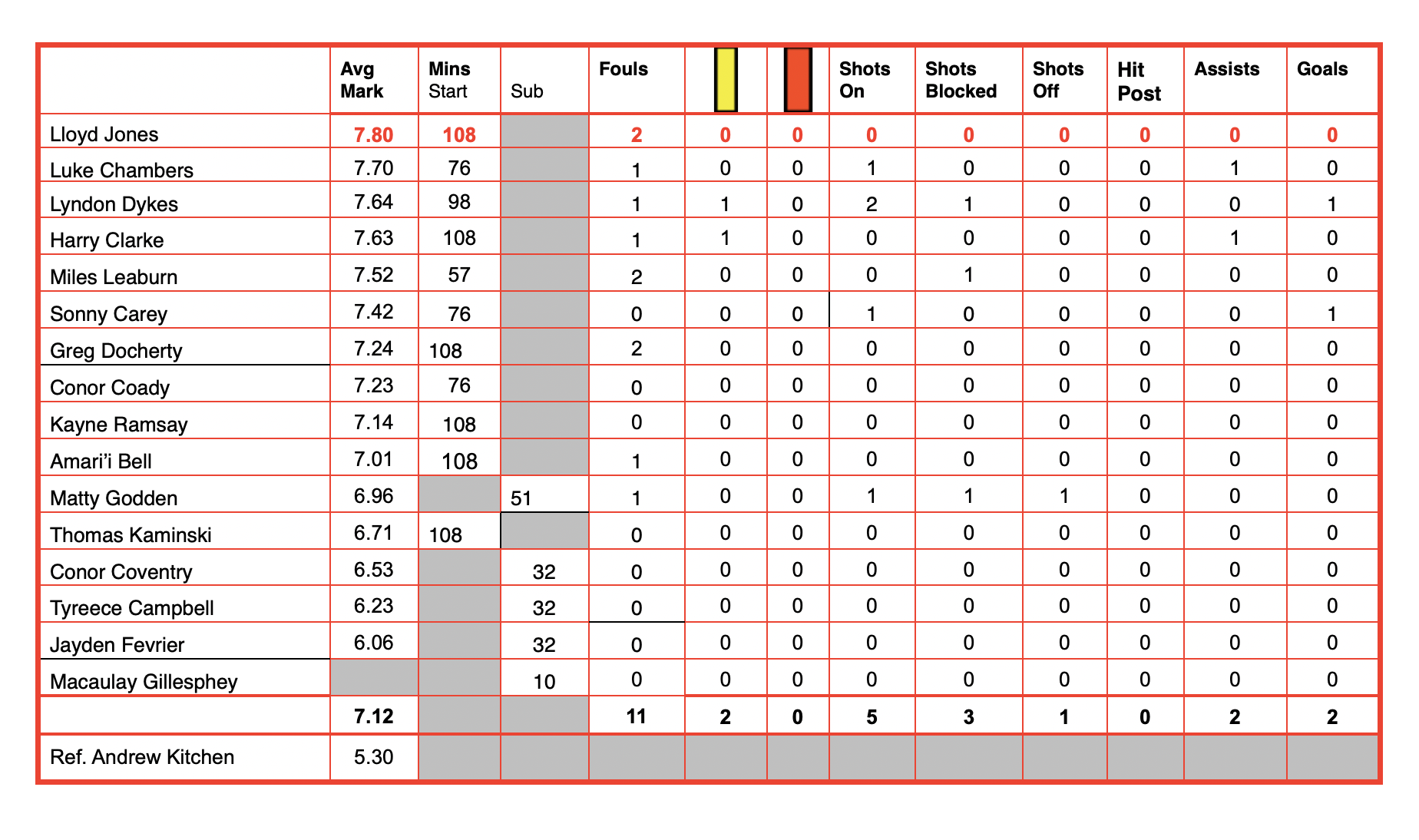 ross1 said:Not wishing to find many mistakes LL, but you missed their red card in the top table.