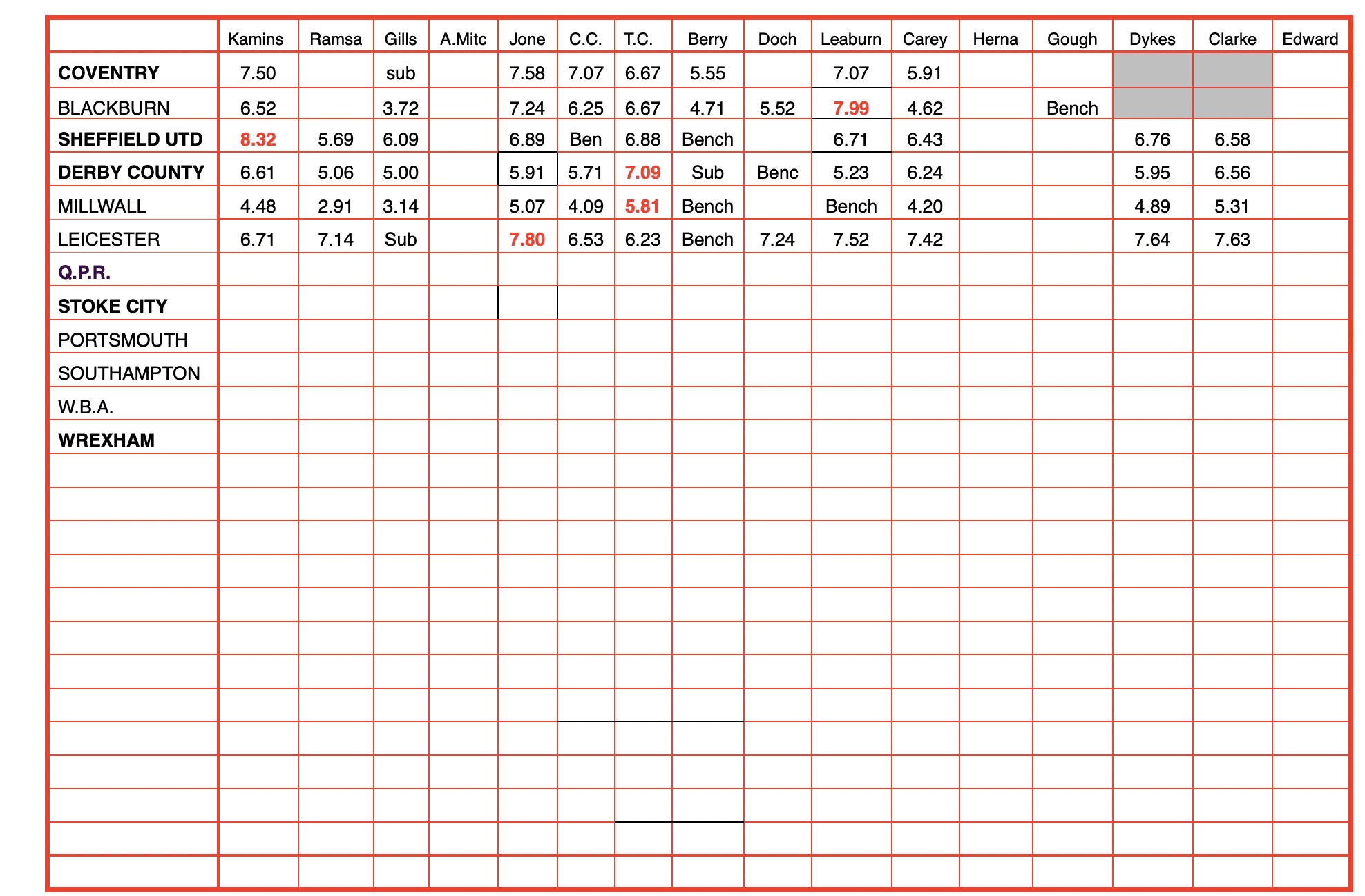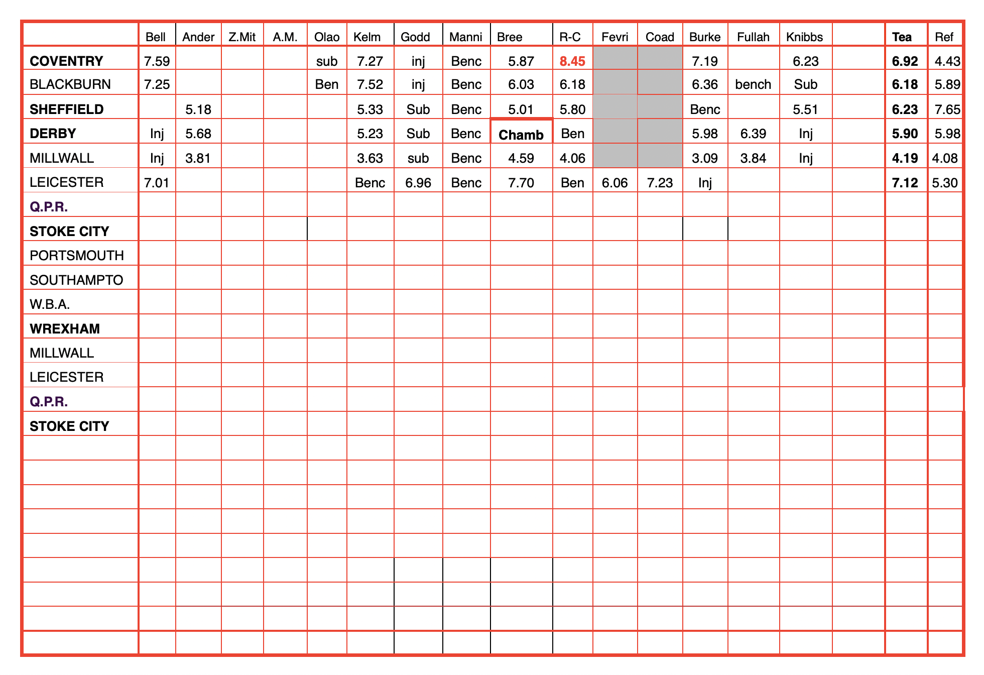 Thank you though.JRC has one (Derby) and Knibbs has three (Watford, Coventry and Portsmouth).2 -