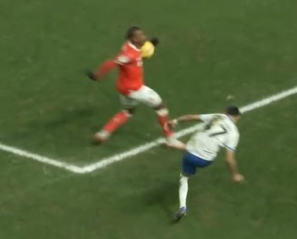 I thought it was a pen, not sure how the ref saw it, as Bell would have blocked his view.