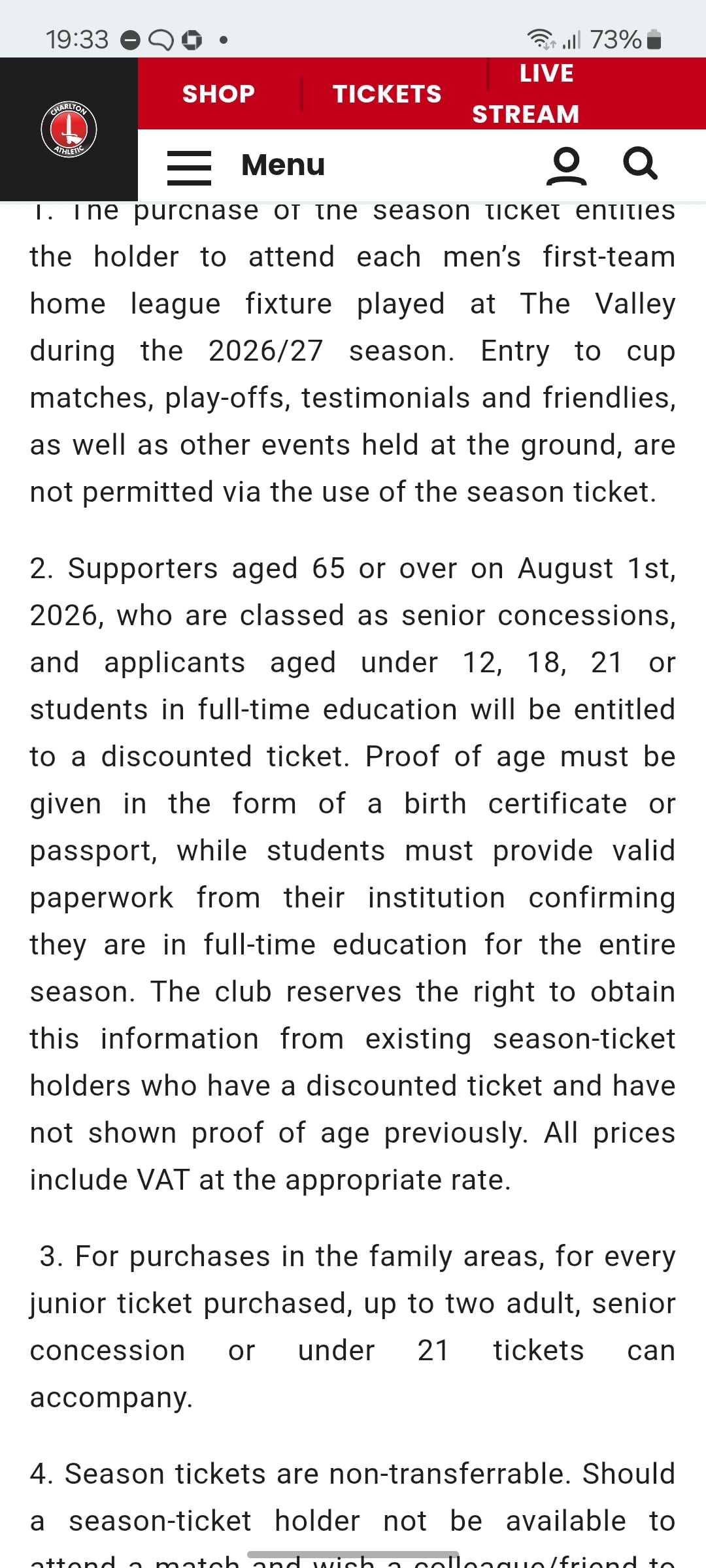 Should be age at 1 August but not 100% clear.kidbrookeaddick said:Just out of curiosity, when is my eldest no longer eligible for the U12 ticket. He is 11 currently and will be when the season starts but turns 12 in September. Will I be able to buy him an U12 ticket still or will he no longer be eligible?