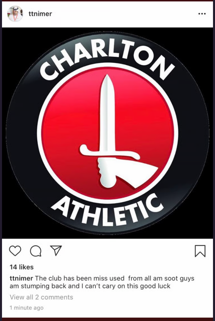 He still seems fairly legit, whatever he does. He hasn't taken down his Charlton related posts either.MarcusH26 said:
