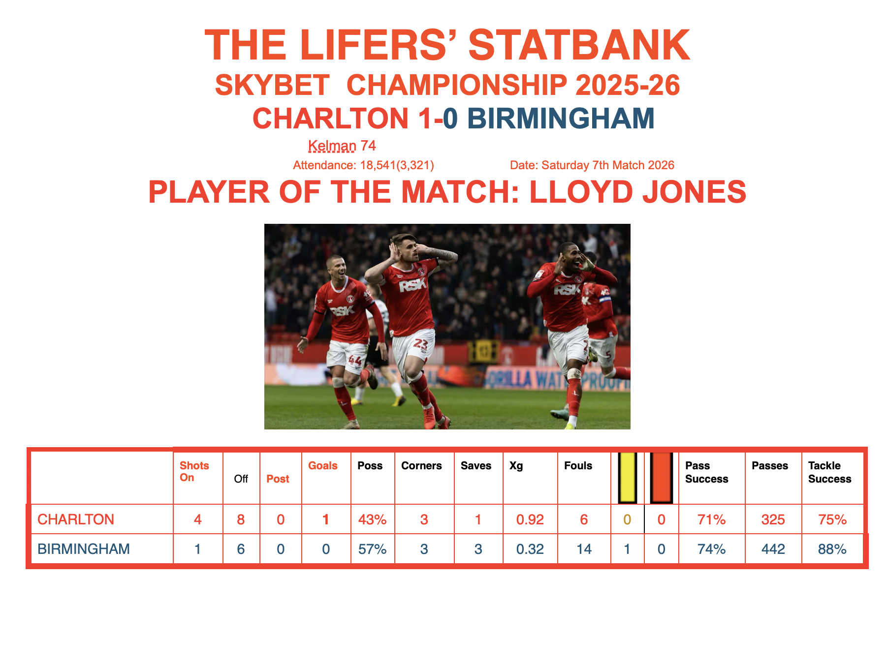 STATBANK: CHARLTON 1-0 BIRMINGHAM