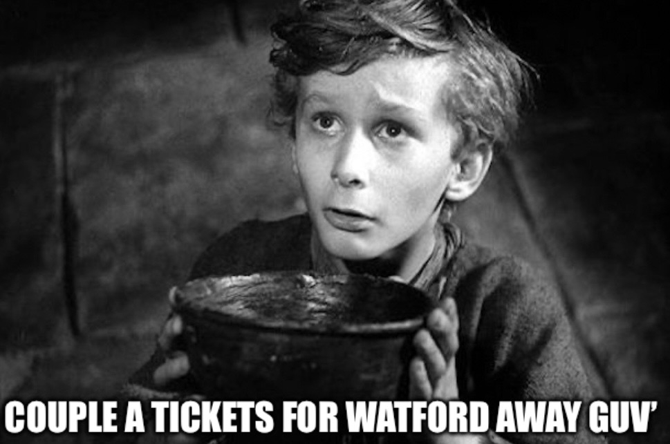 Hey, Watford based Addick here - don't suppose anyone is trusting / naive enough to get me a couple of tickets for this if I transfer money to them?I've not got to a game since Wembley and just checked and have a frankly useless 15 loyalty points2