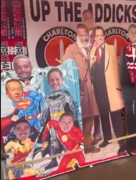 I saw this picture on twitter of the souvenir stall opposite the club shop from the Wrexham game with various Charlton personalities' heads superimposed on top. It's not especially clear in the screenshot, but Miles Leaburn is Rodney Trotter, Steve Brown is Uncle Albert, Kevin Lisbie is Iron Man, Curbs is Superman, Scott Minto is Batman, Lloyd Jones is Wonder Woman(?!) and Kaminski is The Flash.