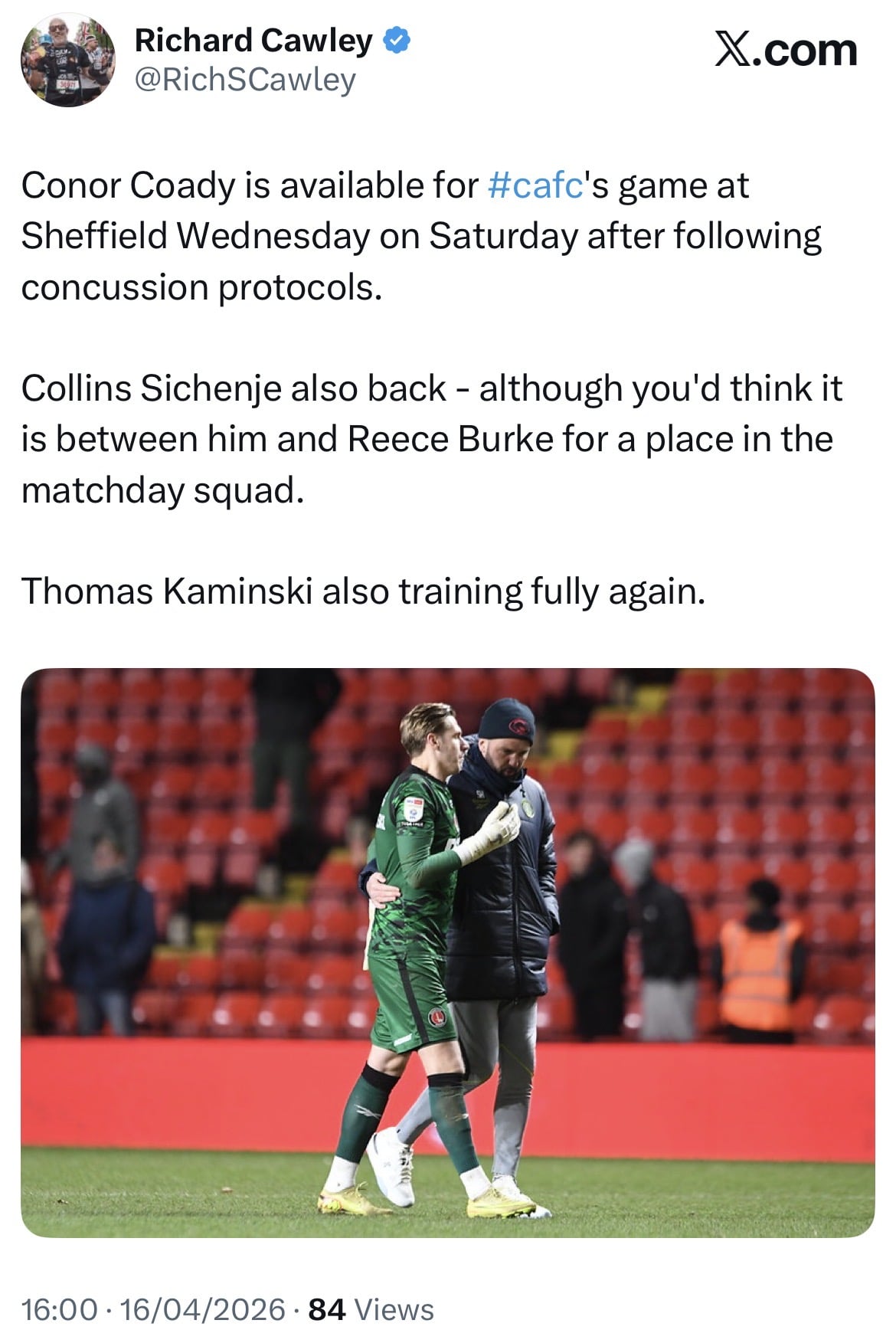 Charlton Team News