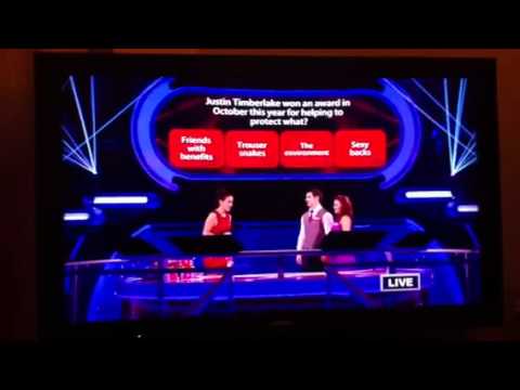The four choices were a) cant remember the name but a film of his b) another film of his again cant remember the name c) the environment d) his hit record Sexyback.