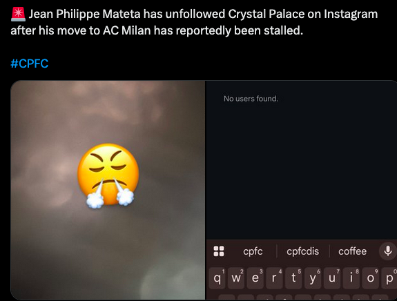 Mateta not in the Palace squad this weekend as he has agreed personal terms with AC Milan