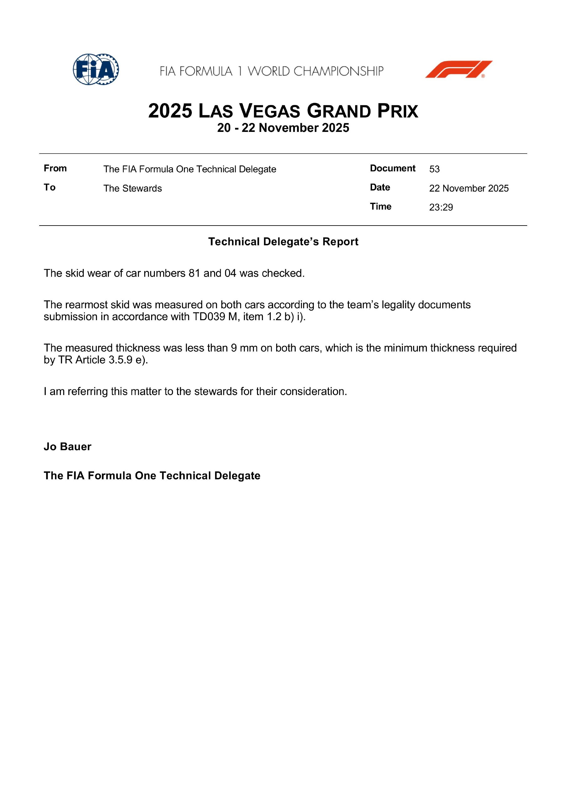 BREAKING: Both McLarens referred to stewards for skid wear issues #F1 #LasVegasGP
