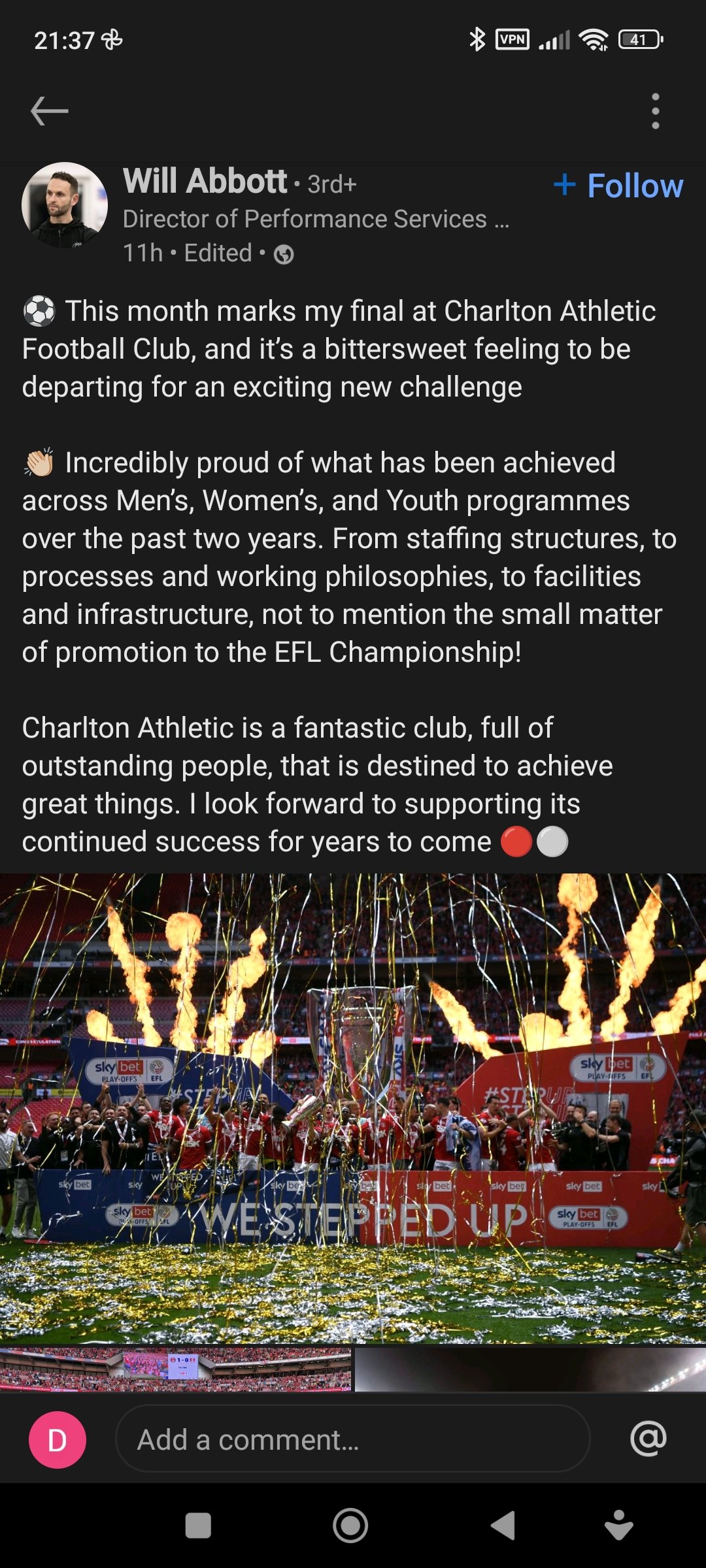 That last line maybe suggests he’s moving on to a league or professional body role rather than a competitor club?