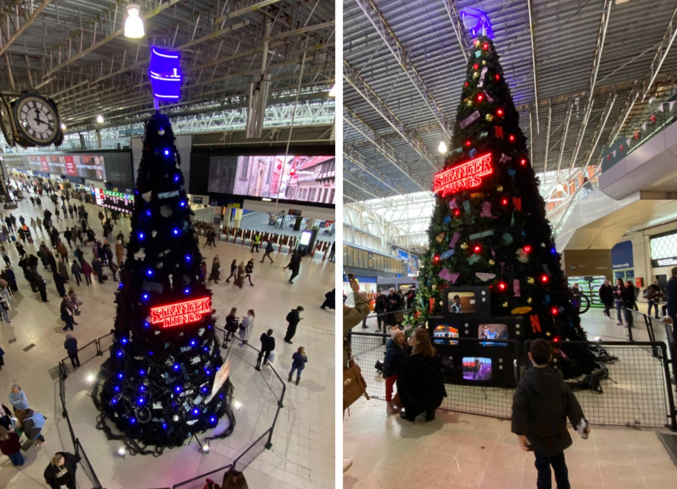 Yes I know Christmas is commercialised every which way, but this dog ugly 'Stranger Things' tree on Waterloo Station is a step too far imo. Surely a brightly lit tree with a simple message of Happy Christmas would suffice.
