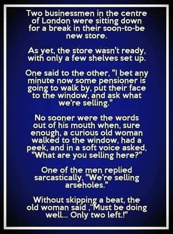 Come on. Give us a good un.