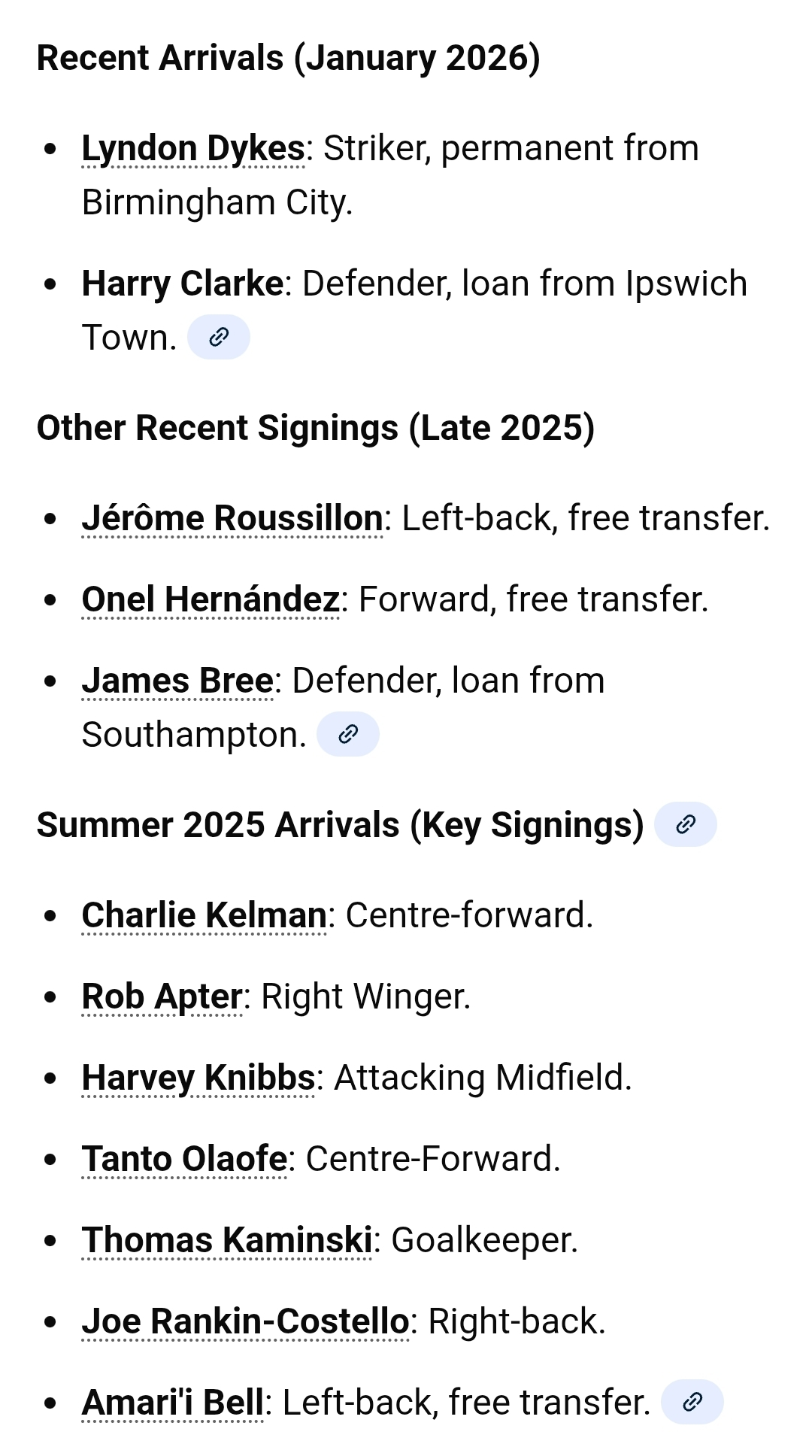 It's not as if we're getting battered by teams because Southampton aside we are generally always in games and it was only 3 weeks ago we got a draw with the league leaders. Clarke and Dykes are decent additions and if we can sort the obvious LWB issue then i'm confident we'll be ok.