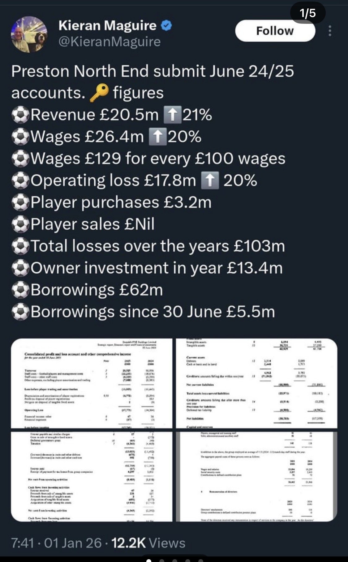 I think that figure is players and staff rather than just players, but it still shows what we are up against when many would consider Preston one of the more “sensible” clubs in the leagueChris_from_Sidcup said:A 17m loss is pretty crazy, and this is a team that has been basically treading water going nowhere in the championship for the past decade.