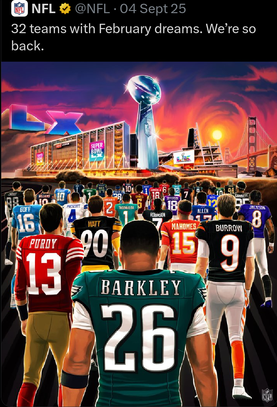• Picture posted by the NFL in September 2025:
