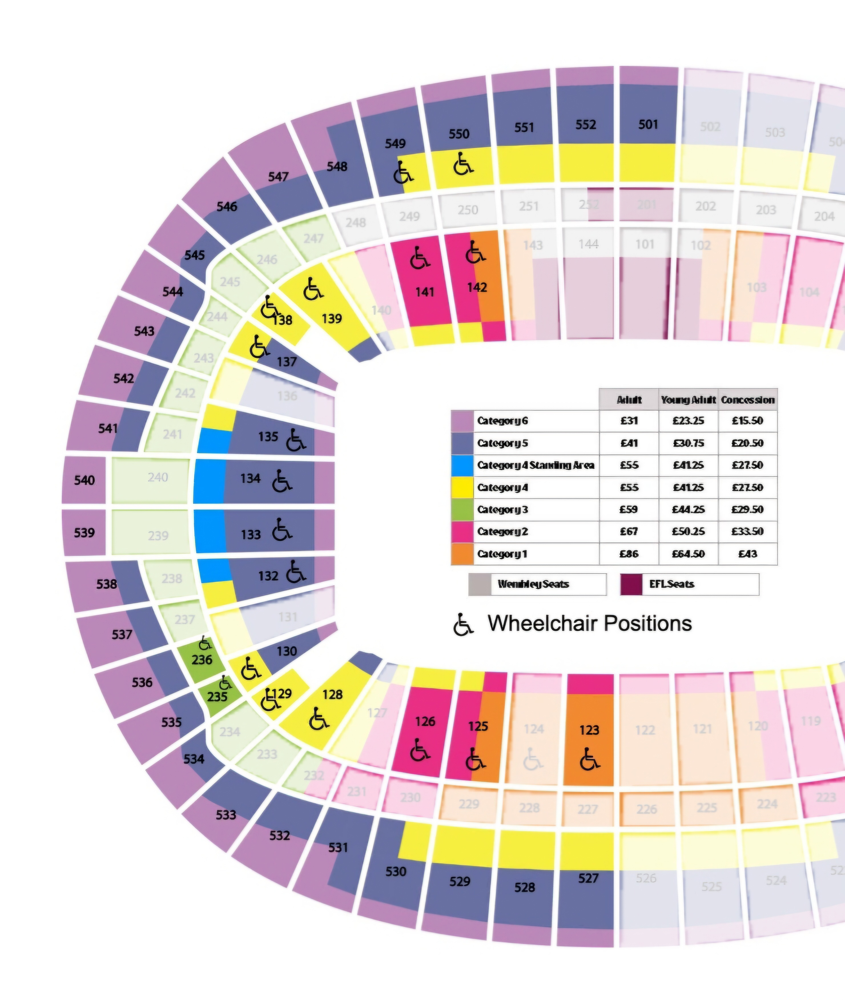 If logged in as a disabled/wheelchair supporter, the availability appears a lot better, as your map would include blocks with available wheelchair spaces. Comparing the images we can see many blocks are now wheelchair spaces only.Briston_Addick said:aliwibble said:Could someone who's got access to the latest ticket availability map post a picture up for us? Ta.